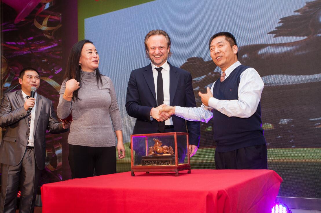 關愛,是康芝一直倡導的企業文化,關愛員工,關愛家人,關愛社會,關愛所有的孩子。慈善拍賣是歷年來康芝年會舞臺上獨有的一道風景,也是所有員工和合作伙伴期待的特殊節目。本屆年會上,作為紅臉蛋基金會創始人,洪江游先生再次捐出個人珍藏多年的的兩件文化收藏品,分別是由中國著名象牙雕刻大師慕秋梅大師匠心打造的硨磲吉祥大擺件,以及寓意萬馬奔騰奮勇向前的海南黃花梨駿馬擺件。兩件藏品分別被公司合作伙伴與外國技術顧問現場競投成功,共籌集款項人民幣6萬元。該善款的30%將捐贈給專注于幫助貧困兒童身心健康成長的康芝紅臉蛋基金,其余則用于現場抽獎。當紅臉蛋基金宣傳片感人的音樂響起,在洪江游董事長帶頭下,康芝高管們競相為紅臉蛋基金現場捐款,員工與嘉賓們亦紛紛慷慨解囊。