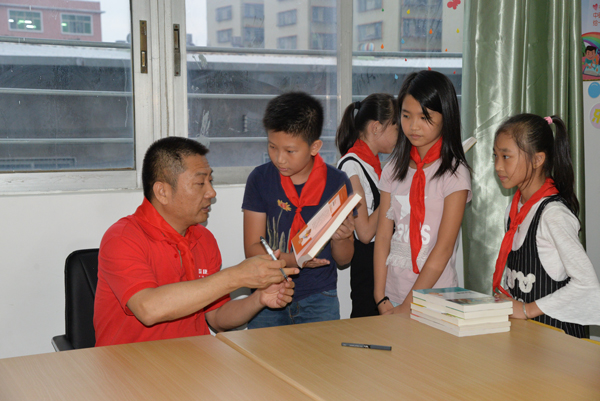 隨后,在現(xiàn)場(chǎng)領(lǐng)導(dǎo)嘉賓、媒體朋友及志愿者的見證下,洪江游先生和楊涌斌校長(zhǎng)共同為“愛心圖書館”揭牌。在面貌一新的圖書館內(nèi),洪江游先生與熱愛閱讀的學(xué)生代表進(jìn)行了閱讀分享,并向孩子們贈(zèng)送自己簽名的兒童讀物,鼓勵(lì)大家培養(yǎng)健康良好的閱讀習(xí)慣,保持求知探索的熱情。當(dāng)天,由康芝紅臉蛋基金捐贈(zèng)的乒乓球桌、球拍等器材也派上了用場(chǎng),嘉賓和學(xué)校師生現(xiàn)場(chǎng)體驗(yàn)了一把運(yùn)動(dòng)的樂趣。