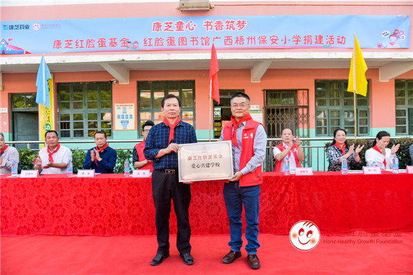 2019年11月11日,康芝紅臉蛋基金攜手康芝藥業梧州代理商團隊及當地診所前往廣西省梧州市萬秀區夏郢鎮保安小學開展愛心探訪及捐贈活動,第21所康芝紅臉蛋圖書館落戶梧州。
