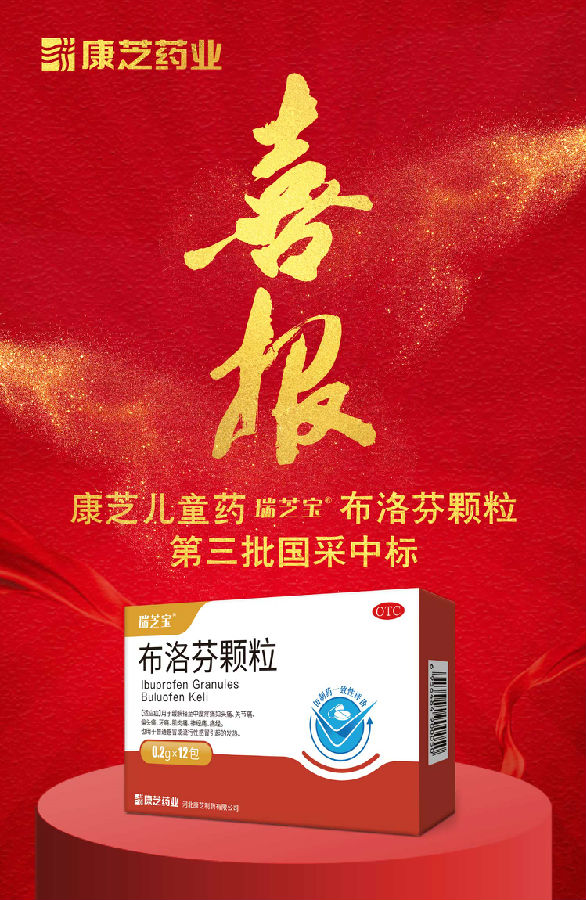 8月20日,第三批全國藥品集中采購中選結果發(fā)布,康芝藥業(yè)全資子公司河北康芝制藥有限公司生產的兒童藥瑞芝寶?布洛芬顆粒成功中標!