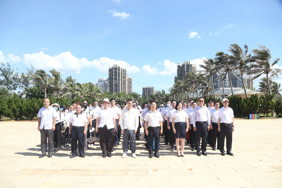 在海南臨高角解放公園,來自康芝藥業黨支部攜手華夏銀行海口分行黨委的全體黨員干部、預備黨員、入黨積極分子在革命烈士紀念碑下敬獻花束,對烈士表示崇高敬意。