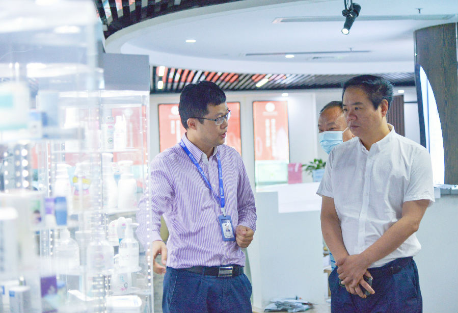 在參觀環節中,上饒國際醫療旅游先行區領導嘉賓一行深入解了康芝藥業的發展歷程、企業愿景及戰略布局,并充分肯定了康芝藥業的“兒童大健康戰略”及“精品戰略”。