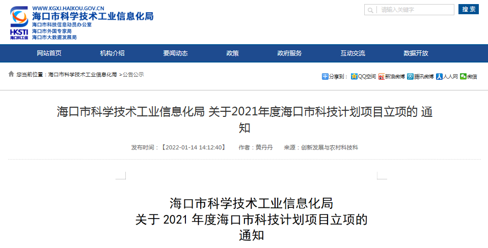 據了解,海口市科技計劃項目是海口市鼓勵科技創新的重要政策,旨在優化海口市科技創新環境,建立以企業為主體、市場為導向、產學研深度融合的技術創新體系,深入實施創新驅動發展戰略,加快創新型城市建設,通過鼓勵科技創新推動海南科技事業快速發展,加快推進海南自貿港建設發展。