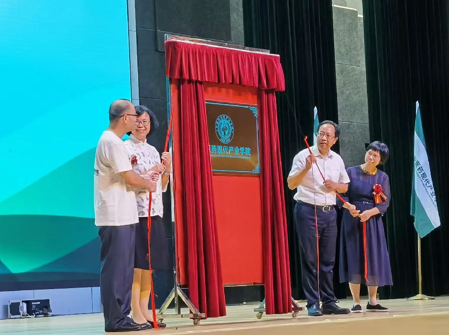活動中,廣東藥科大學(xué)校長翟理祥研究員、云浮市政協(xié)主席梁麗嫻女士、君安醫(yī)生集團董事長車軍先生和康芝藥業(yè)副董事長洪麗萍女士在儀式上分別致辭,并共同為“廣東藥科大學(xué)中醫(yī)藥現(xiàn)代產(chǎn)業(yè)學(xué)院”揭牌。