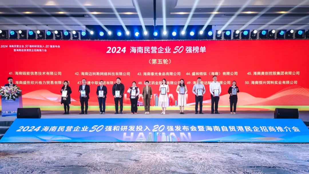 12月2日,海南省工商聯(lián)舉行發(fā)布會,正式公布了“2024海南民營企業(yè)50強和研發(fā)投入20強”榜單。康芝藥業(yè)股份有限公司作為海南首家創(chuàng)業(yè)板上市藥企,憑借綜合實力榮登“2024海南民營企業(yè)50強”榜單。