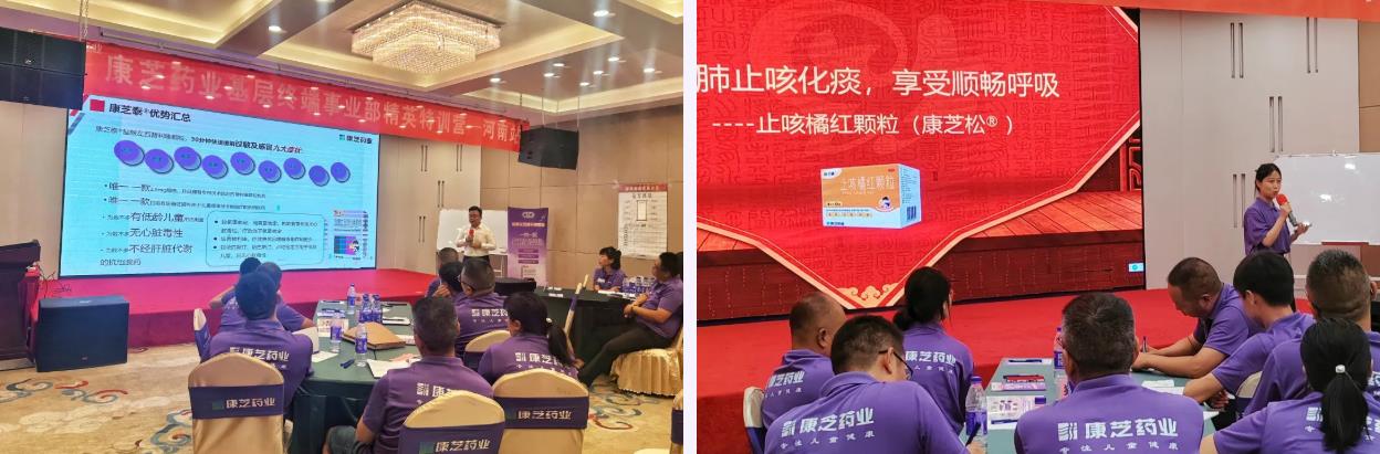 重點產品培訓環節,中央市場部以臨床數據為支撐,結合基層市場需求,深度解讀了鹽酸左西替利嗪顆粒(康芝泰®)、氨金黃敏顆粒(金立爽®)、止咳橘紅顆粒(康芝松®)、參梅養胃顆粒四大核心產品的競爭優勢。“康芝泰®的2.5mg兒童專屬規格,解決了低齡患兒用藥精準性難題;金立爽®的金剛烷胺成分,在感冒初期就能抑制病毒復制??”詳實的案例、清晰的對照,讓在場伙伴們頻頻點頭,筆記本上寫滿了關鍵信息。